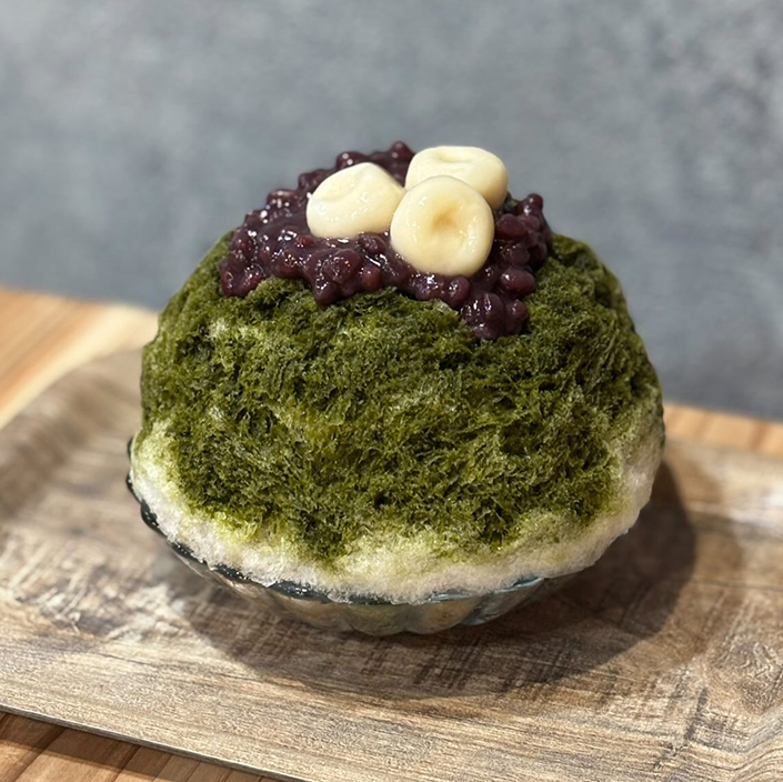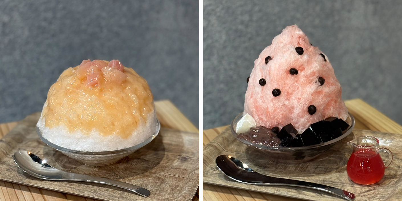 オーナーさん「定番氷だと、いちごと抹茶が人気です。いちごは静岡県のいちご農園さんから仕入れている紅ほっぺを使用しています。ミルクトッピングでいちごミルクにするのが人気です。抹茶は苦味を残したシロップにしているので、甘くしたい方は餡子やミルクをトッピングする方も多いです。おすすめはプリンのかき氷。甘党向きにはなりますが、大きいプリンを食べているかのような感覚でお召し上がりいただけるかと思います。 季節限定のかき氷では、今の時期は桃やとうもろこしのかき氷が人気です。」