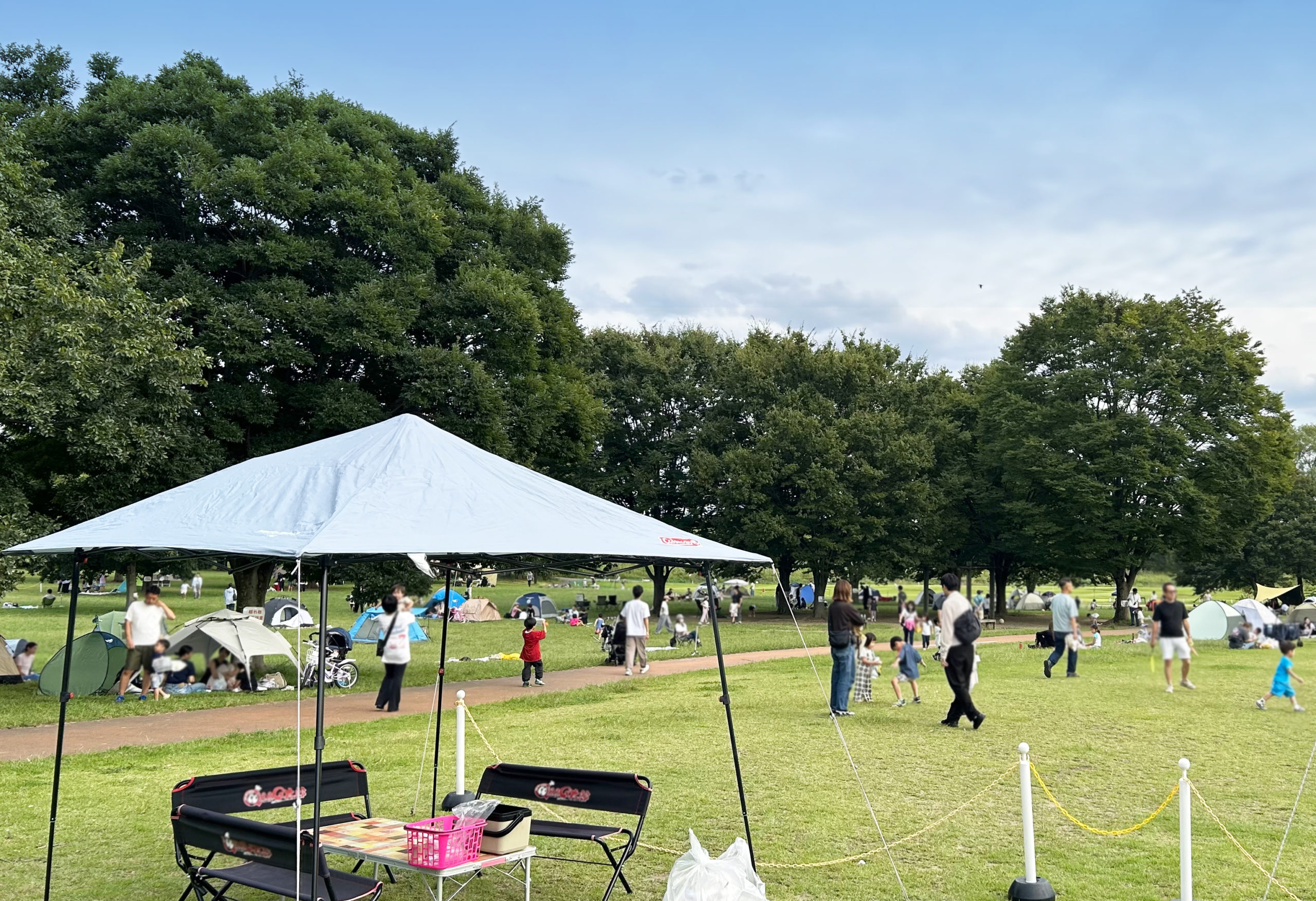 この日は休日だったのでテントを張ったりバーベキューをする方も多く、幼児からお年寄りまで幅広い年齢層の方が公園を利用されていました。特にお子さん達は元気に走り回って楽しそうでした。
